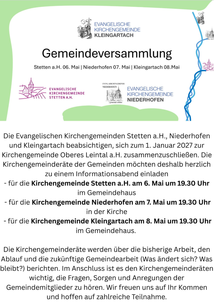 Herzlich Willkommen in der Kirchengemeinde Kleingartach!