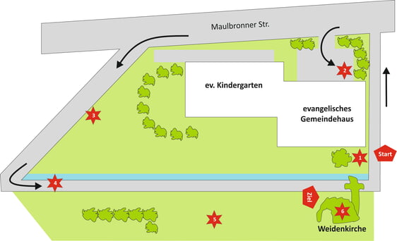 Die Jugendarbeit der evangelischen Kirchengemeinde Kleingartach bietet in diesem Jahr rund ums Gemeindehaus einen biblischen Weihnachtsweg für Kinder und Familien an.
